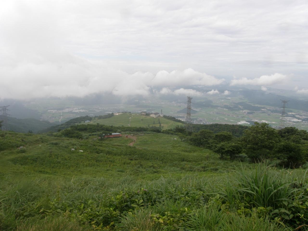 下界を見下ろすと、右下の赤い屋根3棟が「ロッジ山」です。