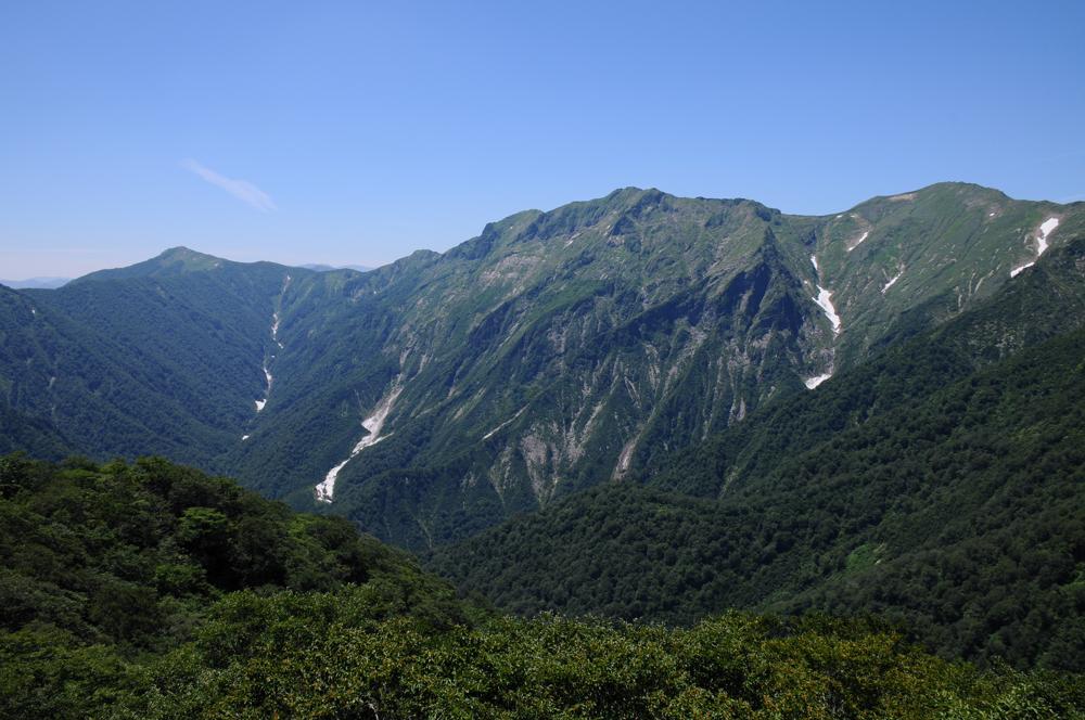 さらに右へと目を向ければ、白毛門、朝日岳、笠ヶ岳がどっしりとした山容を見せていた。