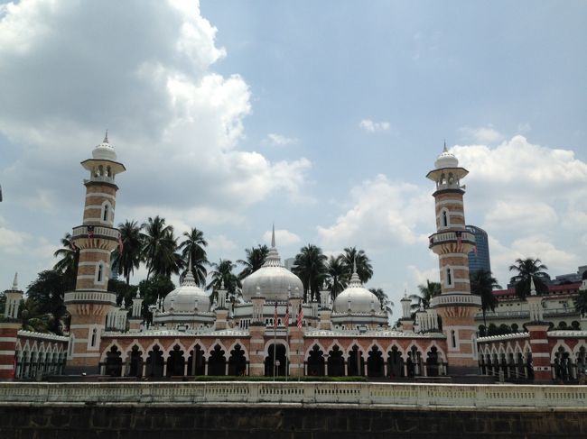 クアラルンプールは、マレーシア語で「泥の混じり合う場所」という意味で、このモスクは、その名前の由来となったクラン川とゴンバック川が合流する場所に立っています。