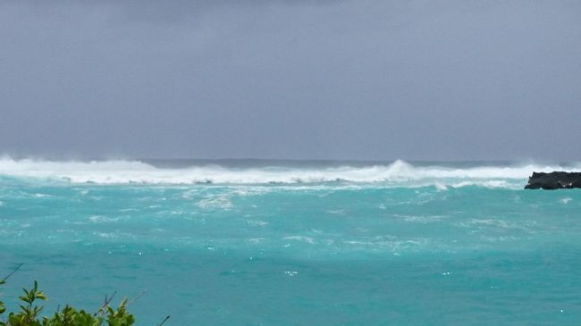 岩に打ち付ける波。近づけないくらい高くなってきた