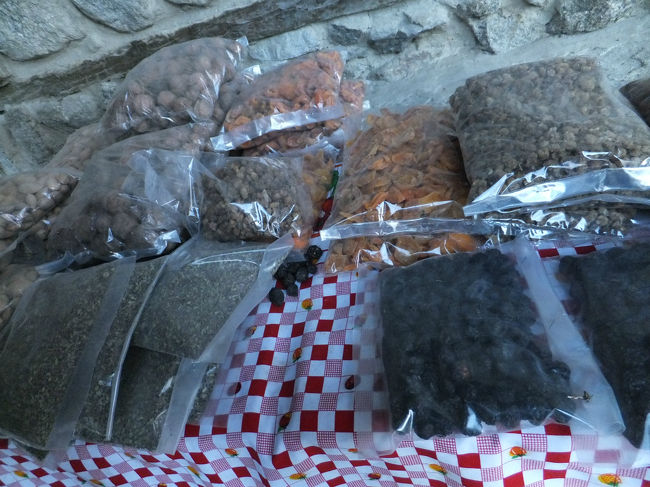 宝石、ドライフルーツ、帽子や民族に伝わる刺繍でできた衣類、小物などを売っているお店の列を発見。