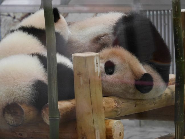パンダラブにいるお姉さんパンダ。クーラーのきいた部屋で爆睡中。朝ご飯を食べたら、みんなお昼寝しちゃうのね。