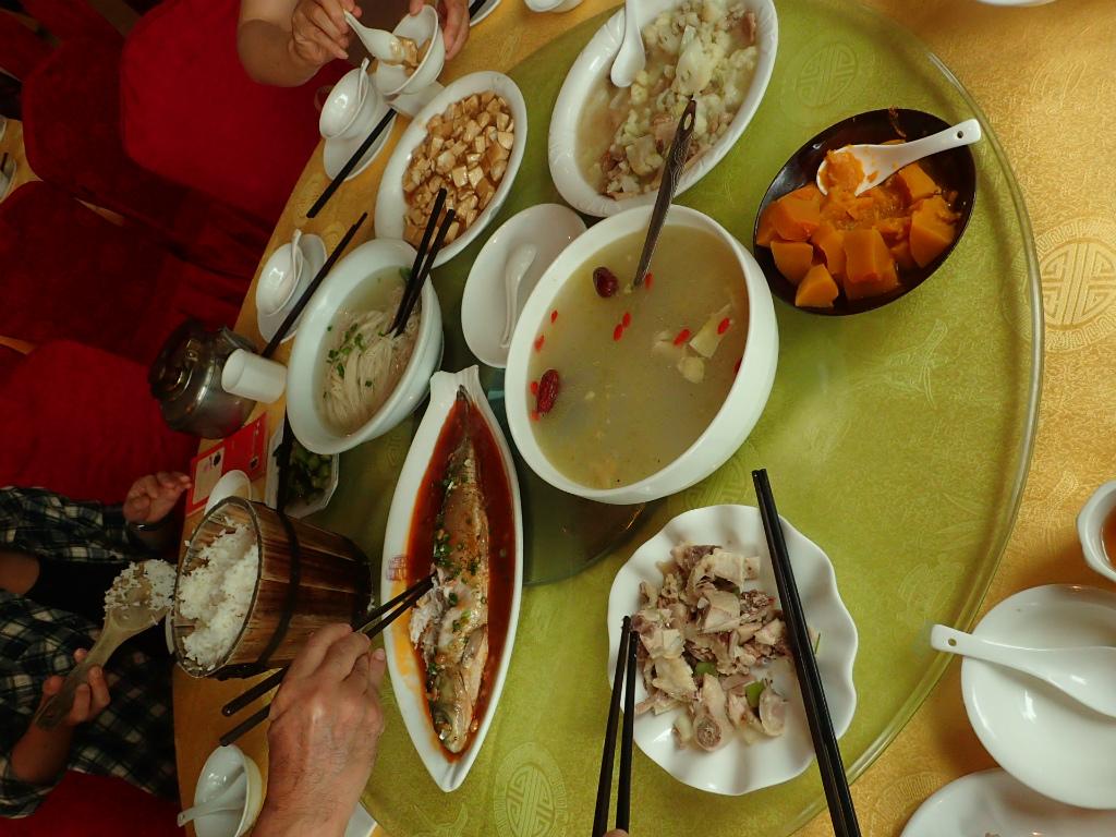 近くの料理店にて、毎度の全員で囲っての中華料理。 -
