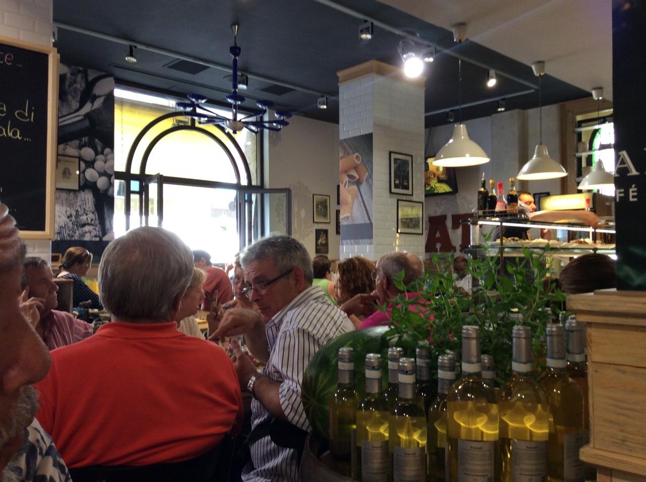 向かいの席には、日本人の女性が一人で来ていました。在住の方かな?と思ってたら、一人旅だそうです。同じく〈アーモイタリア〉で見てきたそうです。 -