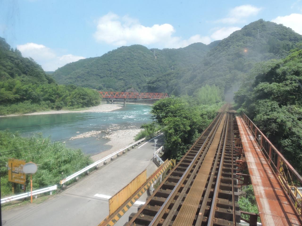 肥薩線に入ると日本三急流のひとつ球磨川に沿って煙をはきながら進んでいく