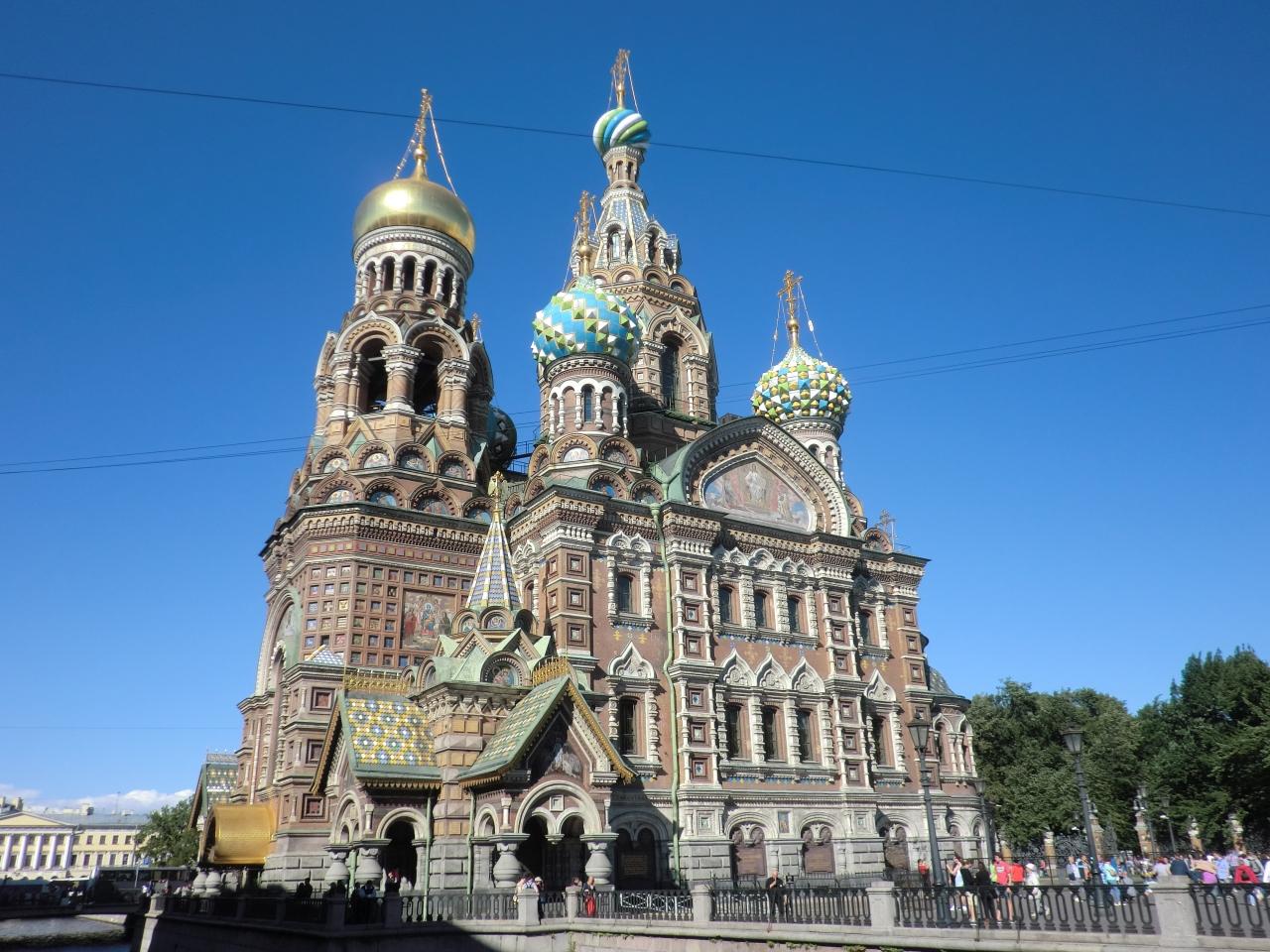 地の上の教会へ。エルミタージュ美術館より徒歩で移動することができます。中に入るにはこの写真でいう裏から。こちらは出口側になります。