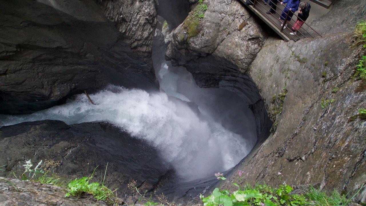 この天気ではハイキングはできないので、ラウターブルンネンにあるトリュンメルバッハの滝に行くことにしました。