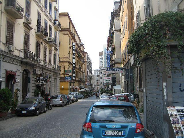 私はうまいこと車がとぎれるのをまって走ってわたる。ナポリ中央駅 駅