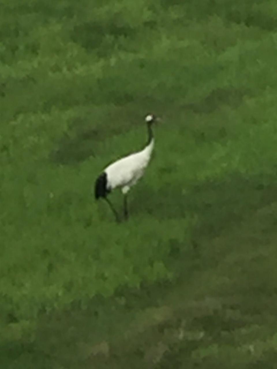 原生花園を後にして次はオシンコシンの滝のほうへバスは50分ほどかけていきます。道中なんとタンチョウが!