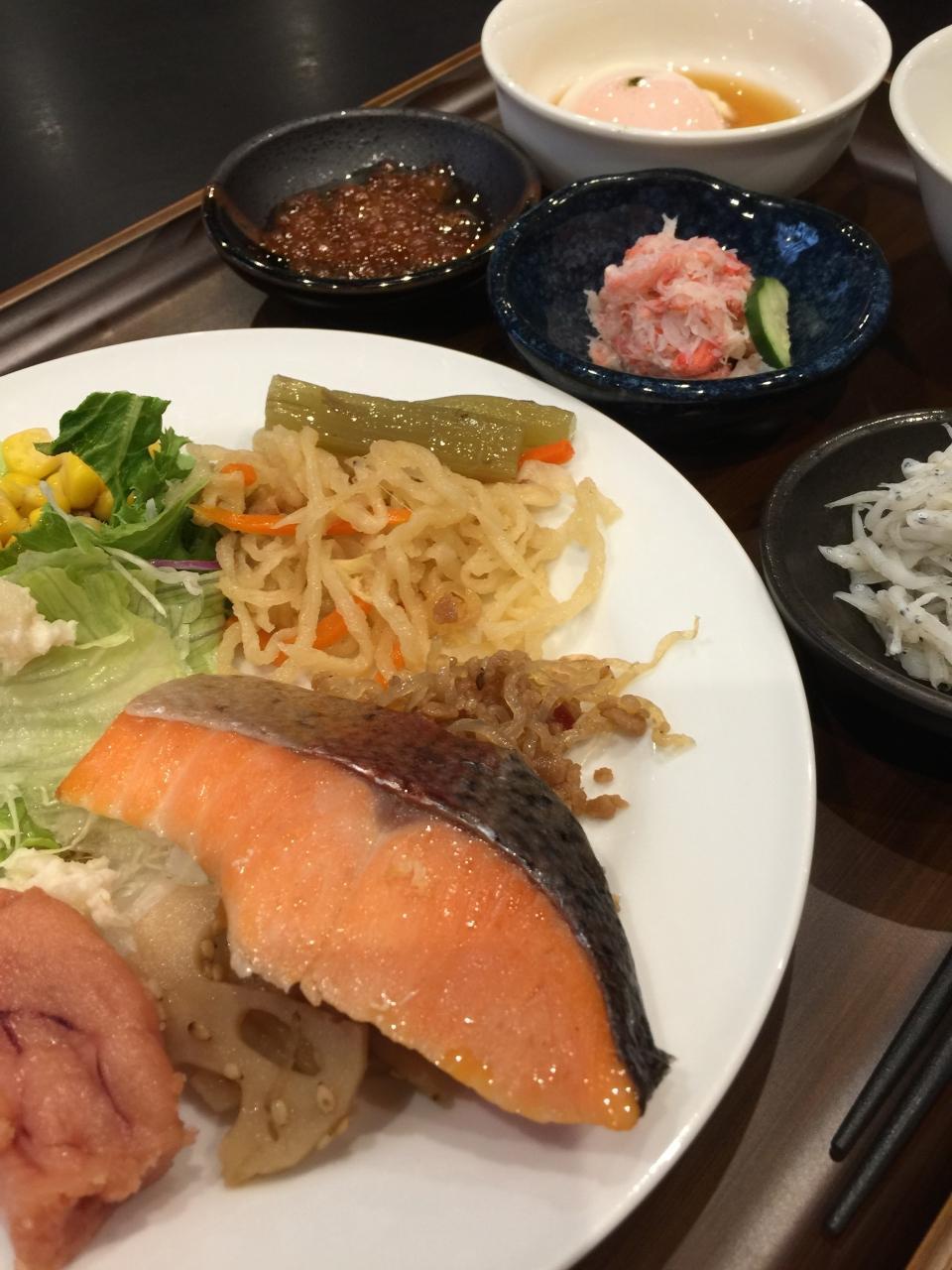 朝食はビュッフェでバランス良く食べられます。