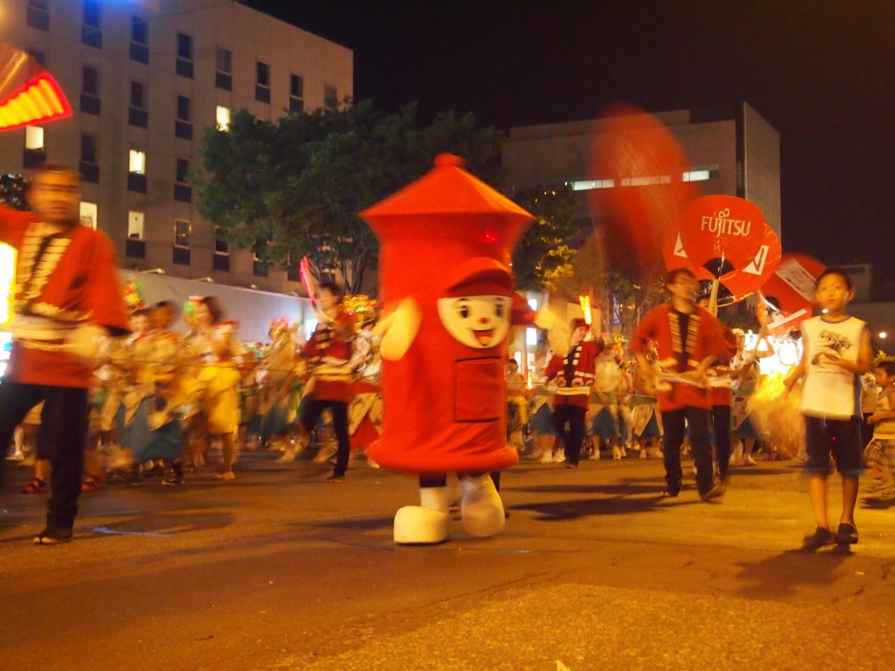 それぞれの出陣場所からずっと踊り続けていると跳人さんも疲れてきてますが、