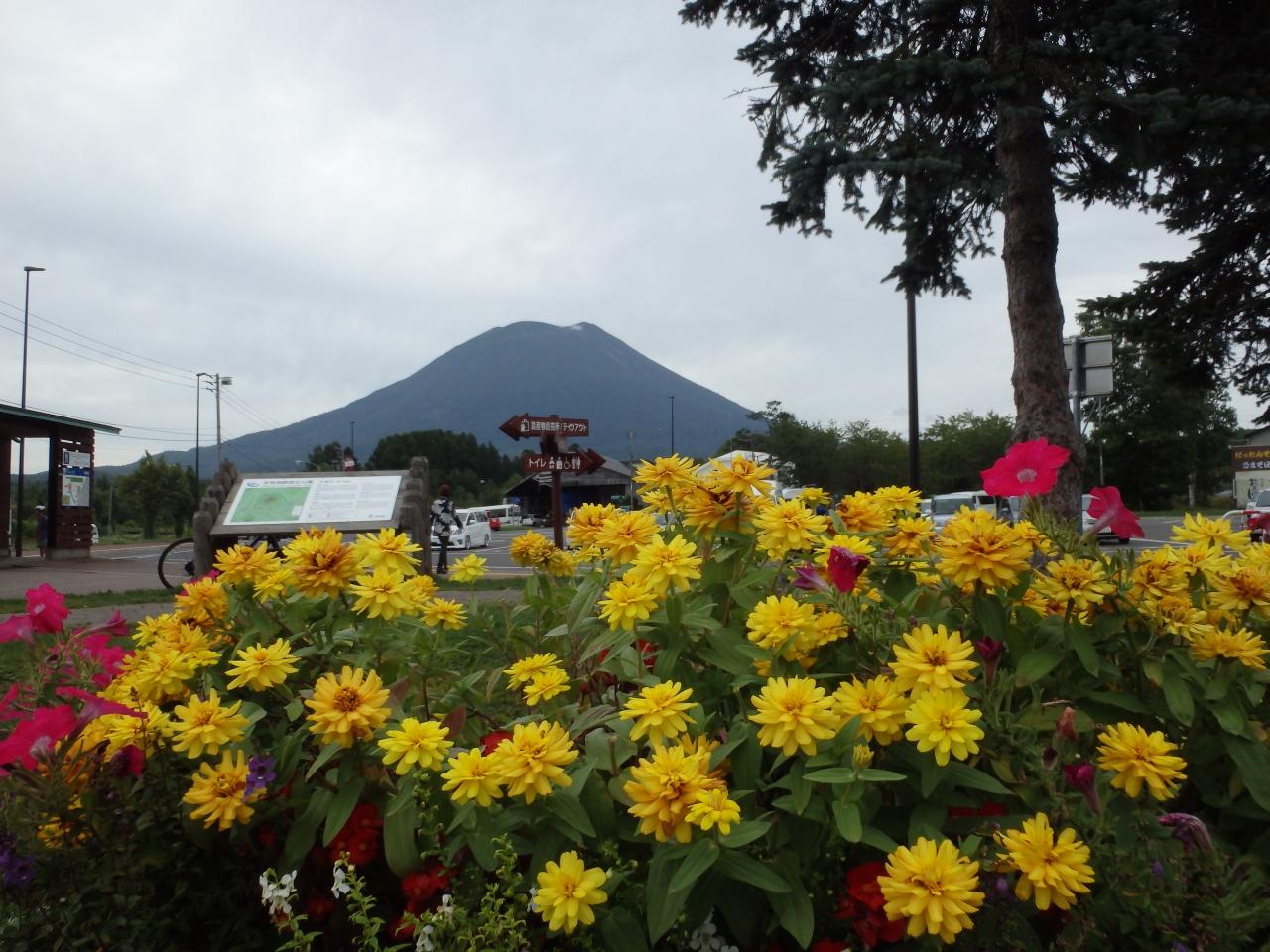 終わりかけのひまわりだけど、羊蹄山にお似合い。