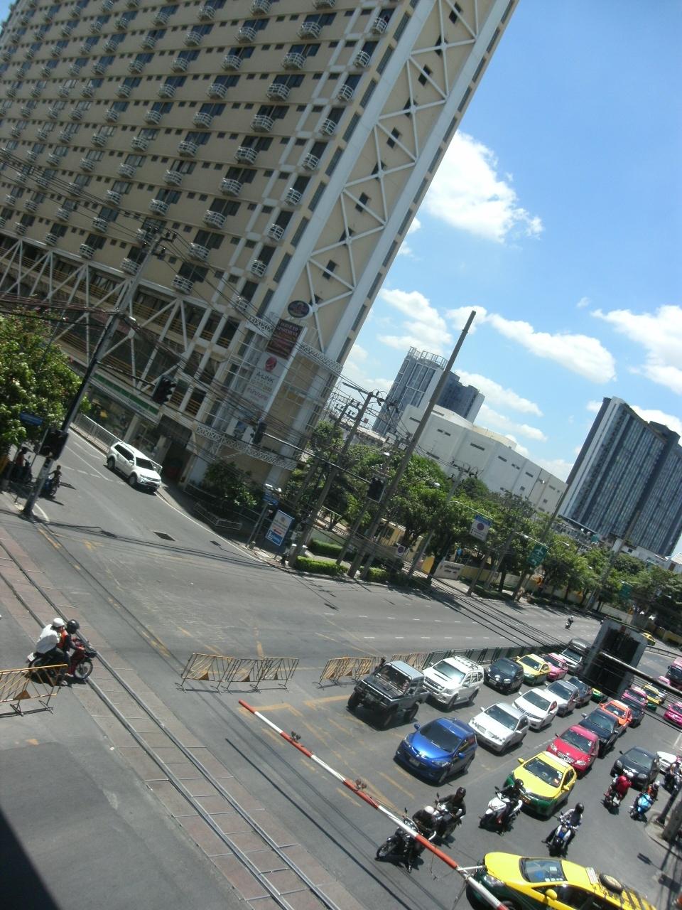 B.T.Sパヤータイ高架下に在るタイ国鉄の踏切です、足手まといチャンお昼のフォーチュ−ンの370Bにビビってペーンローイで食べたいと抜かしおった!