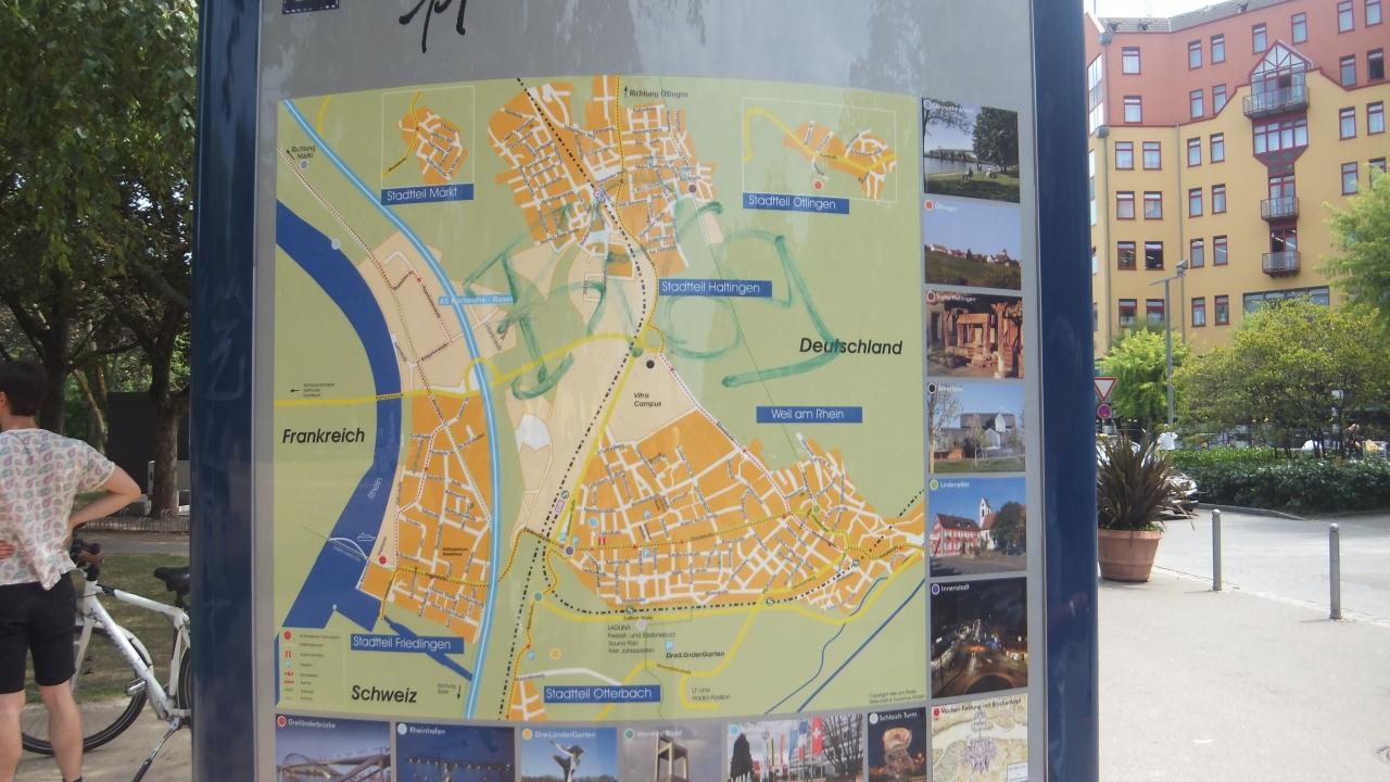路面電車8番でKleinhit nigenまで行き、そのまま真っ直ぐ行くとドイツへ入国、左手のライン川の橋を渡るとフランスです。 -
