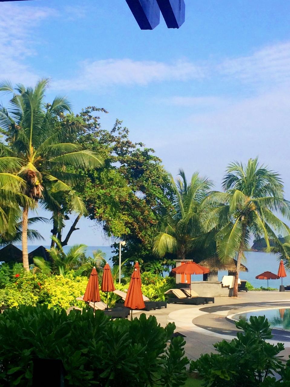 朝ご飯から戻ったらテラスでゆっくり〜♪おっちゃん旦那は日課になってるTOEICのお勉強。