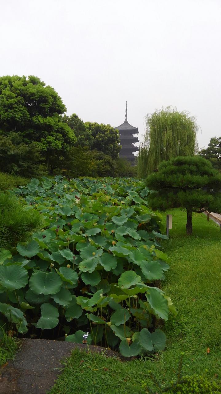 チェックアウトしたら雨の東寺にタクシーで向かいます!