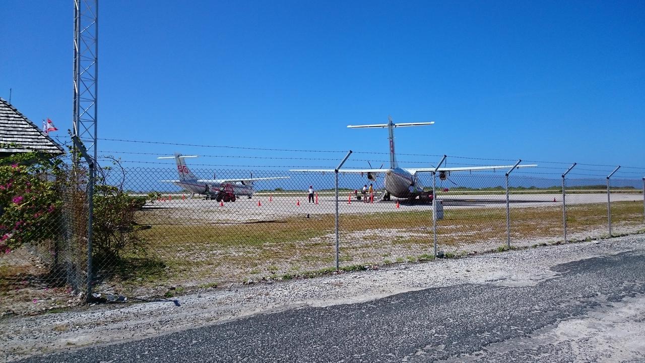 乗り継ぎのためにランギロア島にある空港へ。…これ、本当に空港??ってくらいに小さい平屋の空港でした。