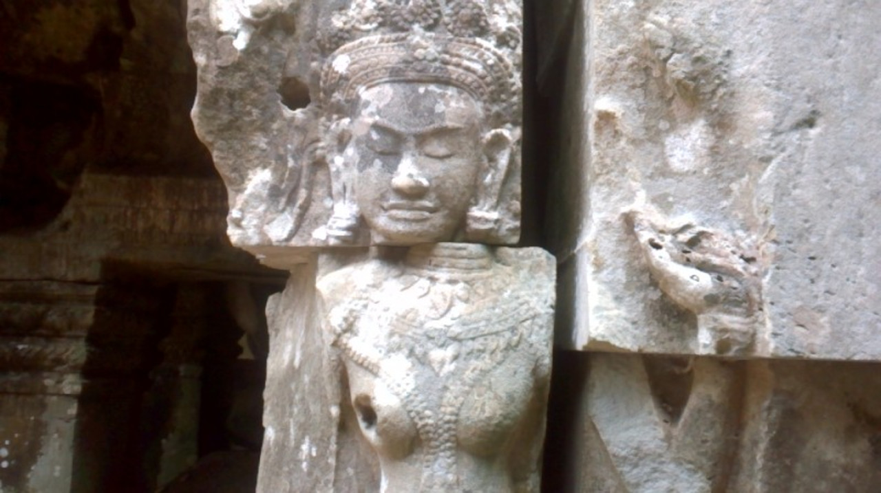 プレアカーン寺院の天女アプサラの彫刻でございます。