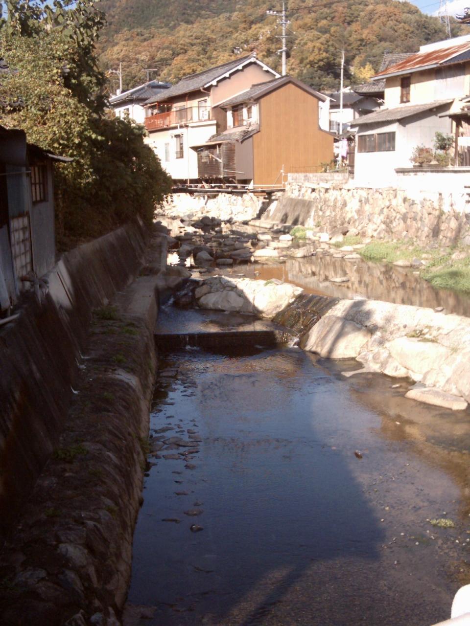街道をちょっとそれて川を見る。あの橋を誰か渡るんでしょうか?危険な気がします。