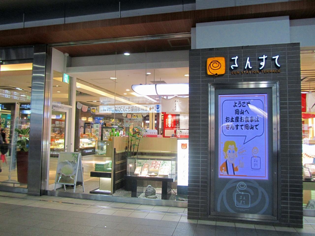 さんすて岡山の中でも2階の新幹線の改札の向かいのエリアは、ちょうど岡山みやげの店やレストランが集まっているエリアでした。