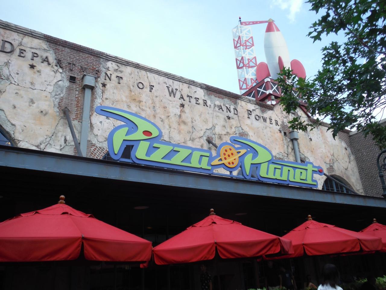 本日のFP+は3時半スタートなので遅めのランチです。トイストーリーの映画にも登場した「ピザ・プラネット」です。