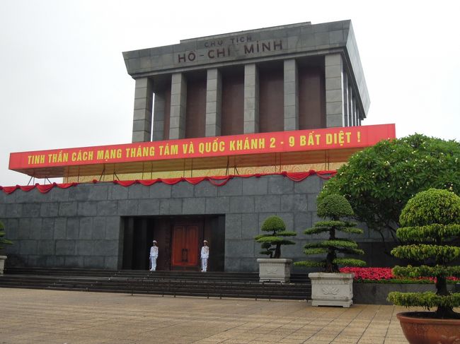 こちらにホーチミンの遺体がガラスケースに安置されている。見学は1日1回だけ。