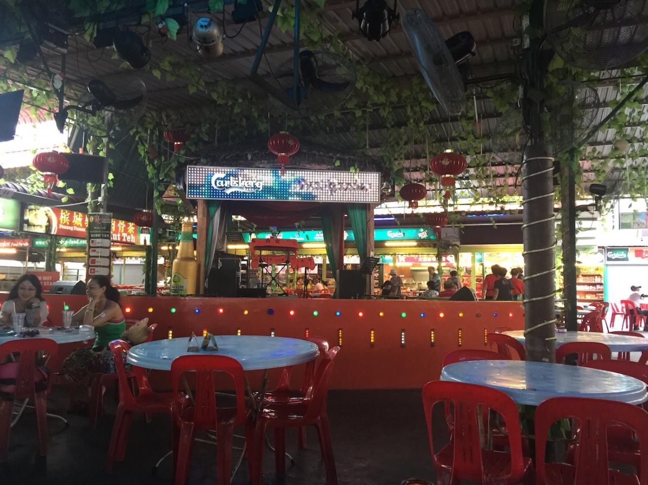 ペナン島で夕食を食べるとき、賑やかになるのは8時以降。まだ、閑散としています。本当は、目の前のステージで毎日ライブが行われていました。