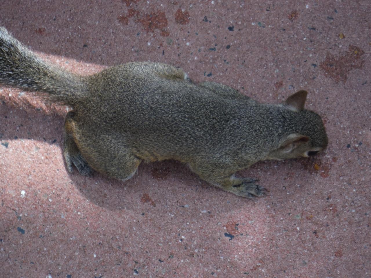 ベンチで食べてるとすぐに野生のリスが集まってきます。最初は私たちが食べこぼした衣を食べていたリスくんですがなんとも愛らしい瞳で見つめられると・・ちょっとわざと落としてみたり・・。