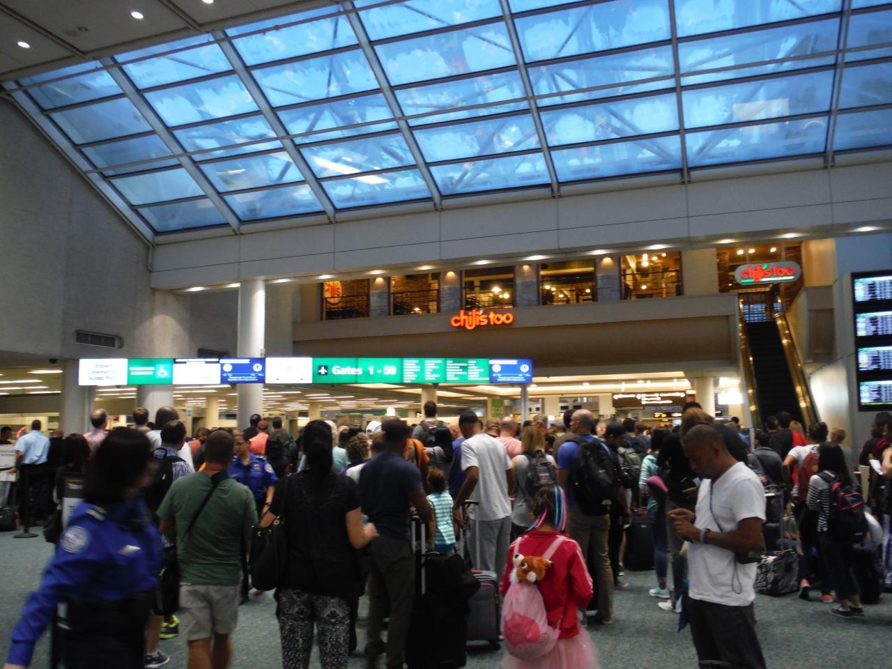 チェックインカウンターはセルフです。自分でパスポート読ませて荷物の個数入れるとタグがビヨーンと印刷されて出て来るのでそのタグをカバンに付けて預けます。アメリカ本土の空港はこんな感じなんですね〜。ハワイしか行ってなかったので時代の流れを感じます。