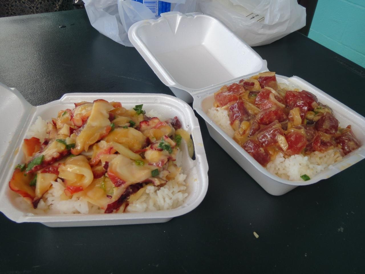 まだ?まだ?と思いながらなんとか「オノ・シーフード」へ到着しました。やっと一息・・・と思ったら娘ちゃんの機嫌が悪すぎてっ!!本当に周りの方にお恥ずかしい。。せっかくのポキ丼もまともに味わえなかったわ〜(って、美味しかったけどね^^)。 -