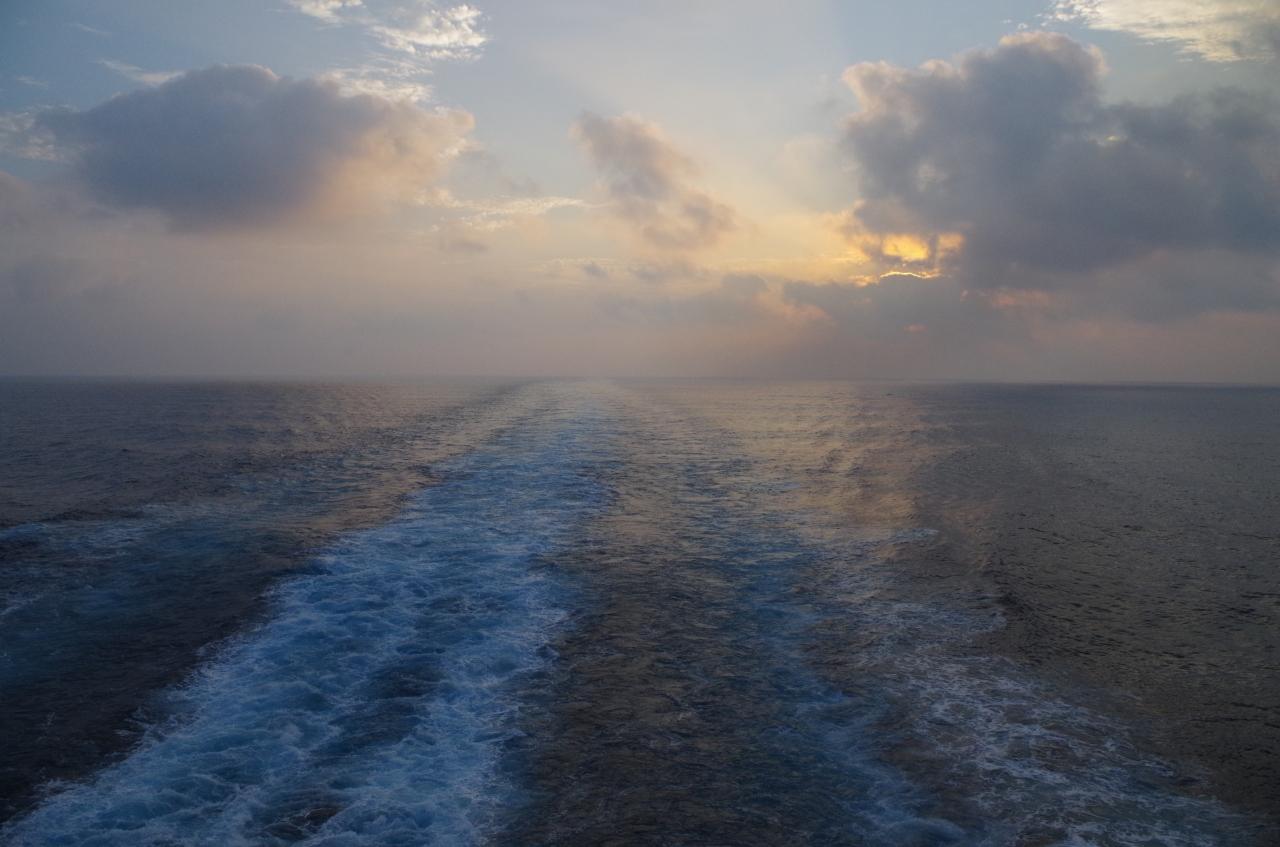 船首からの大海原。6時半頃