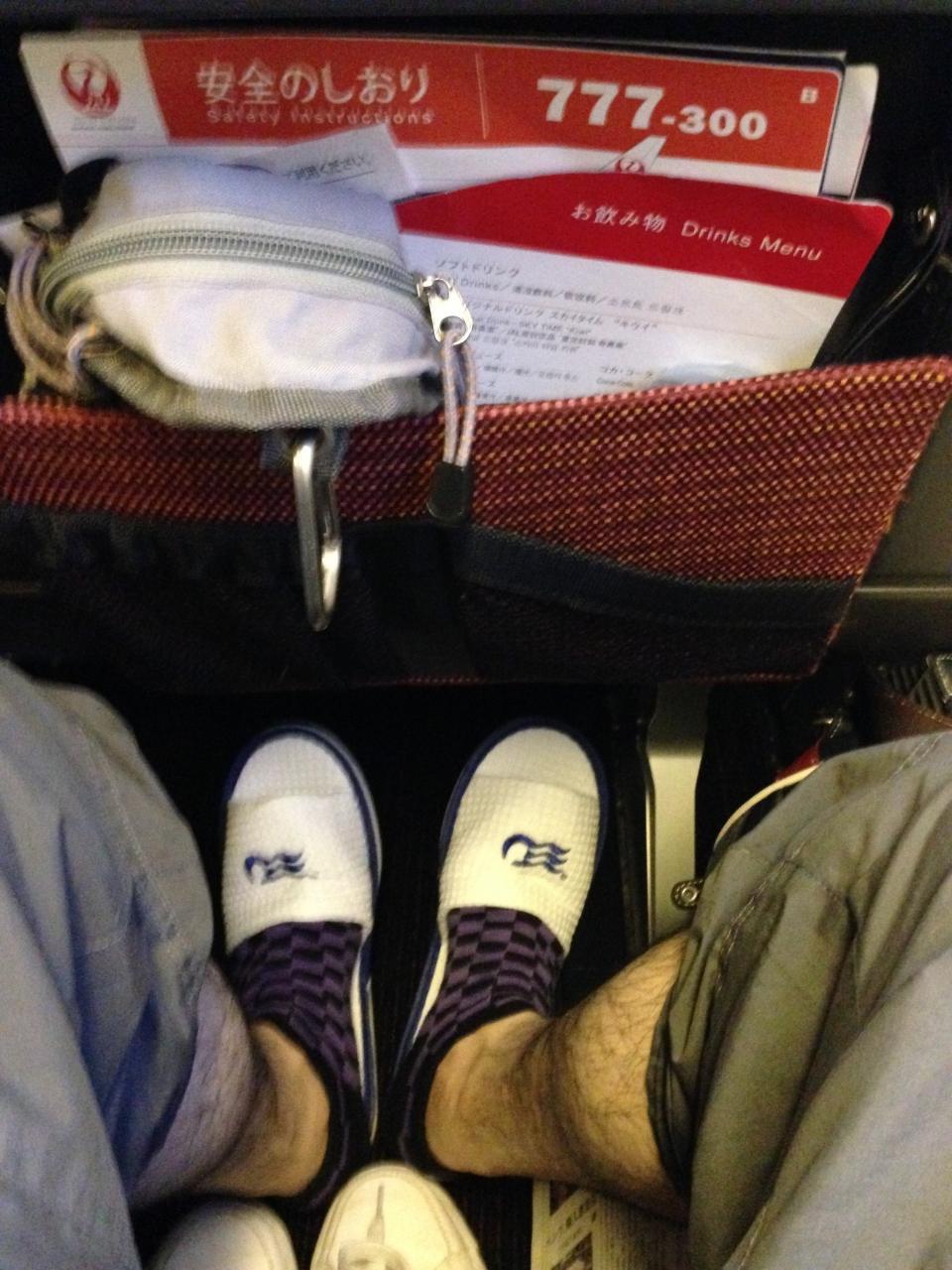 マイスリッパを持参。やっぱ狭い機内、靴は脱ぎたいよね〜