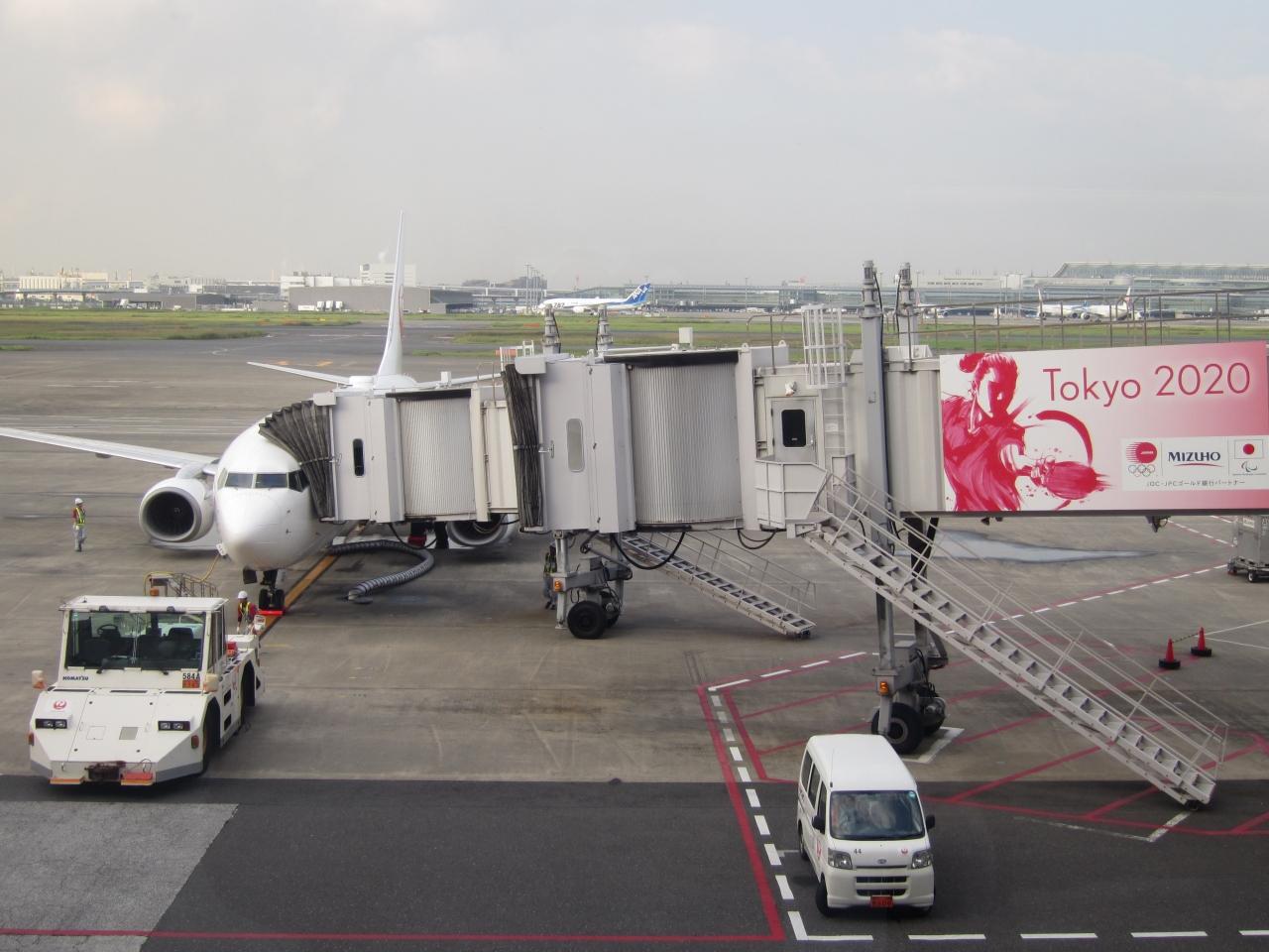 帰りが、JAL242 岡山19:05発→東京(羽田)20:20着