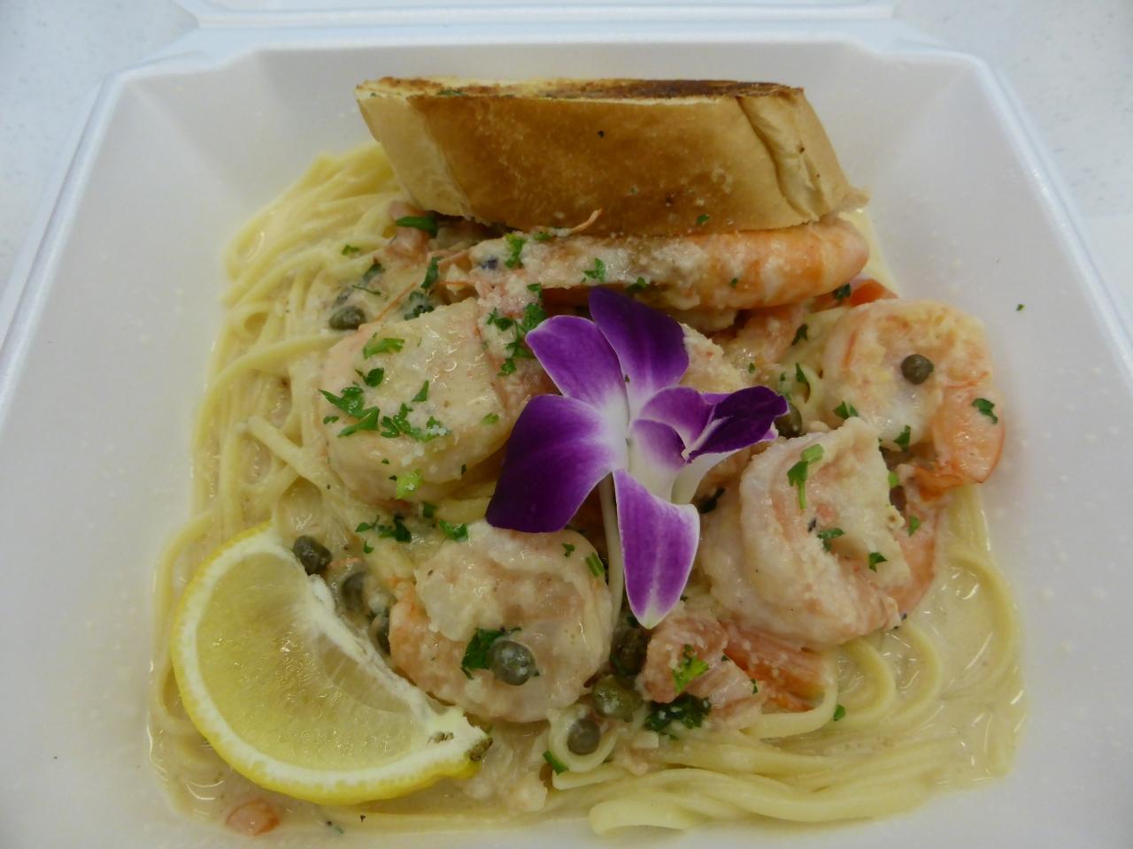 色々ショッピングした後、フードコートでガーリックシュリンプとパスタの夕食。