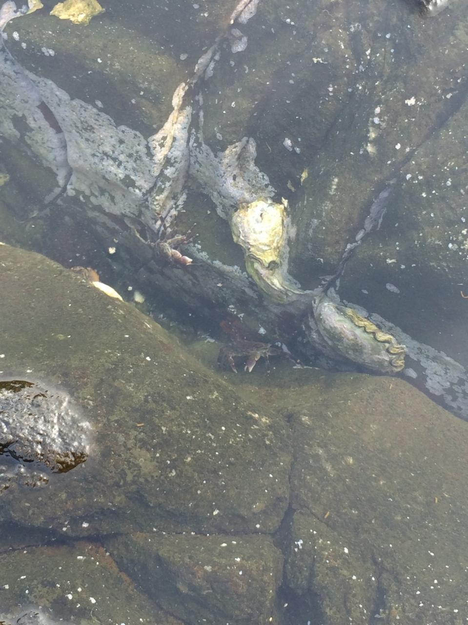 水たまりにはカニがいました。