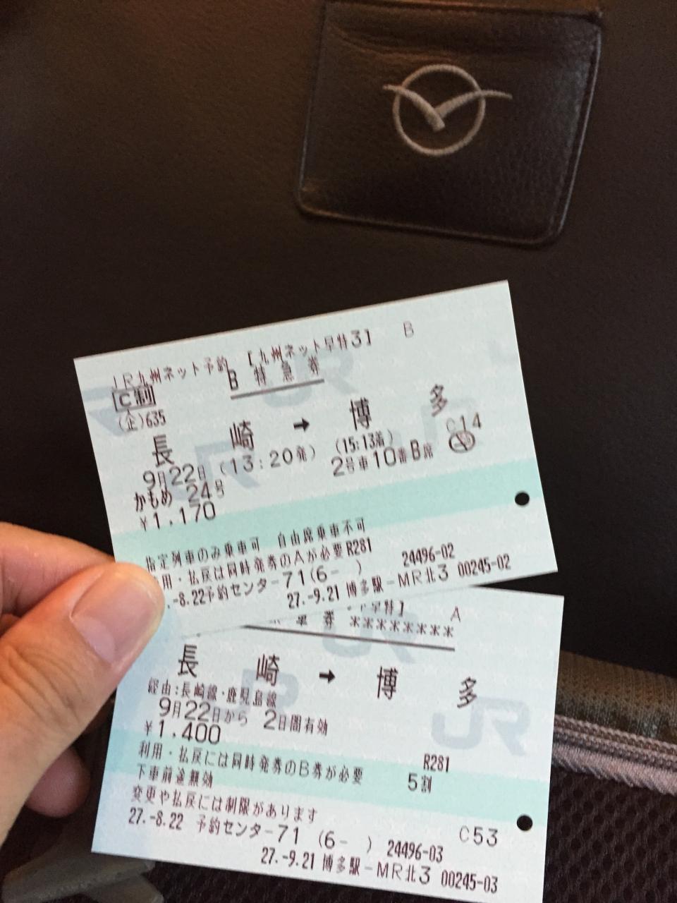 今回「かもめ」のチケットは九州の方はご存知かもしれませんが、2枚切符&4枚切符など割引切符があるのですが遠方だと買えないので、事前にネット予約で購入。博多駅で受け取りました。JR九州のWEB会員に入っているのが役立ちました。