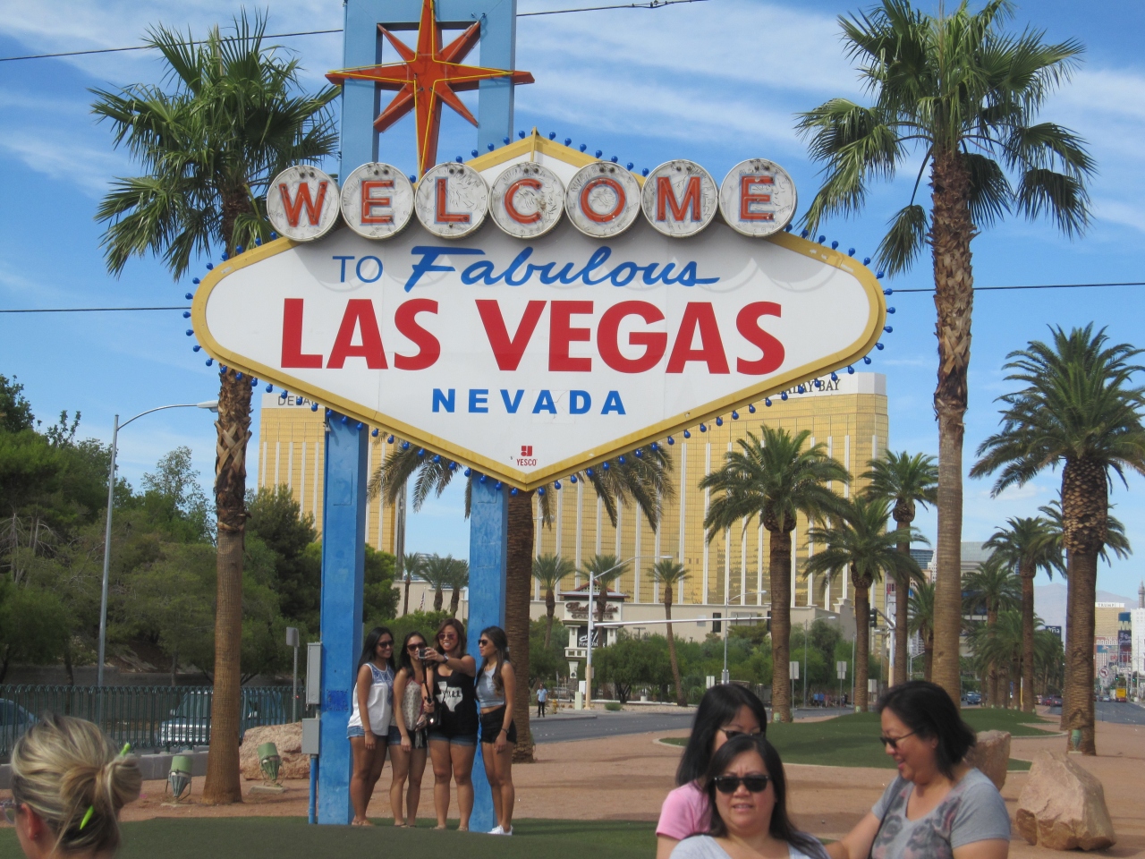 まずはじめにラスベガスでは、マンダレイベイホテルから南に少し走ったところにある、定番の記念写真スポットでお決まりの1枚です。