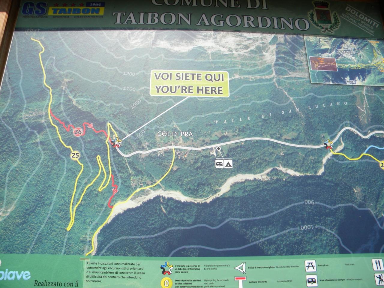 谷の入り口のタイボン・アゴルディーノ( Taibon Agordino )からここ谷奥まで約7kmの間、村やレストラン、山小屋などは全くありません。