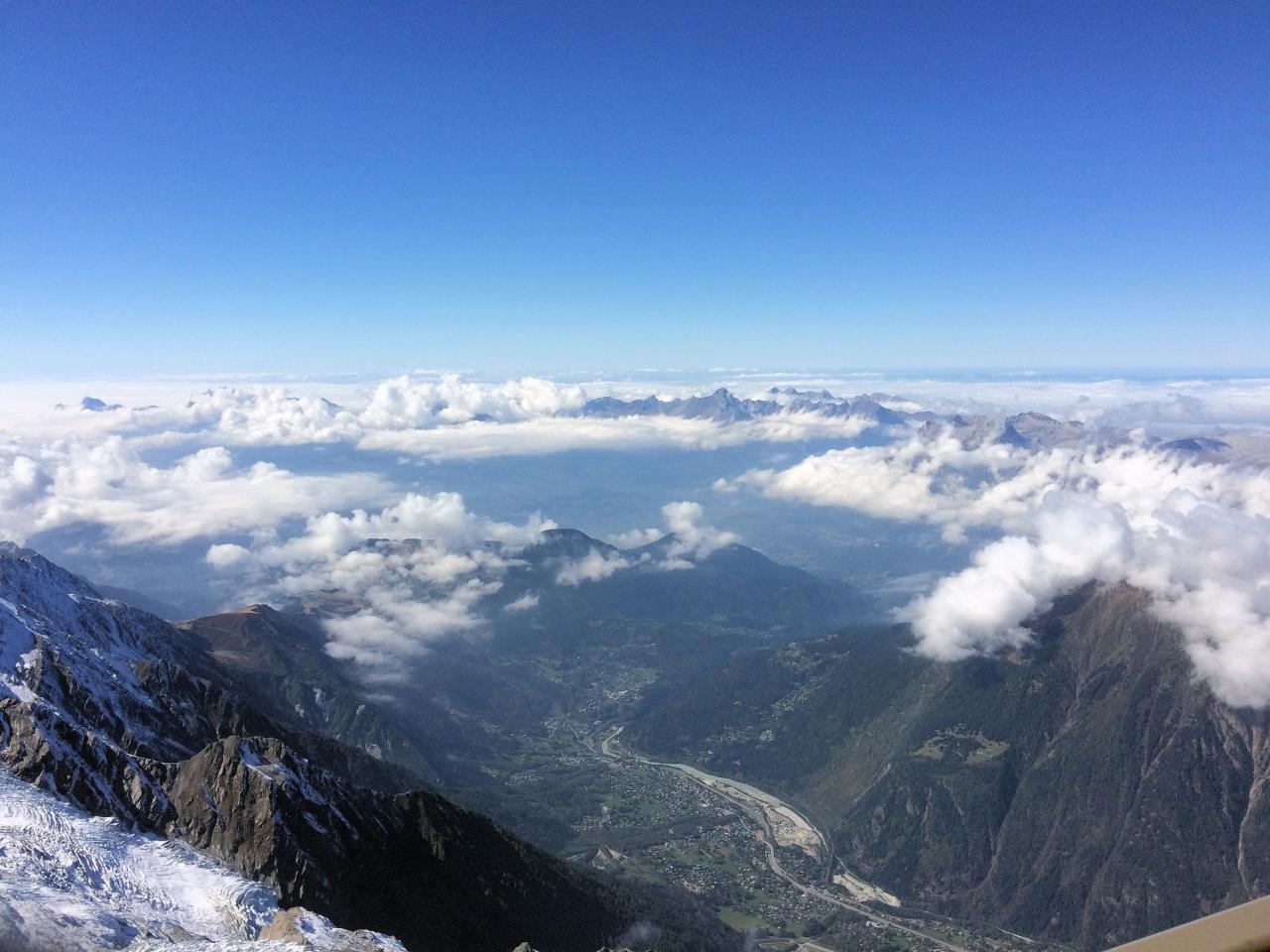この日、スイスのツェルマットを出る時は、曇り空でしたが、フランスに入った辺りから、晴れ間がでてきて、山頂は快晴でした。 -