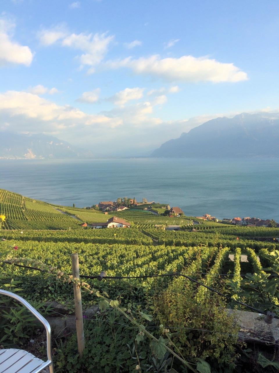世界遺産のラヴォー地区、美しい葡萄畑がレマン湖沿いに広がっていました。