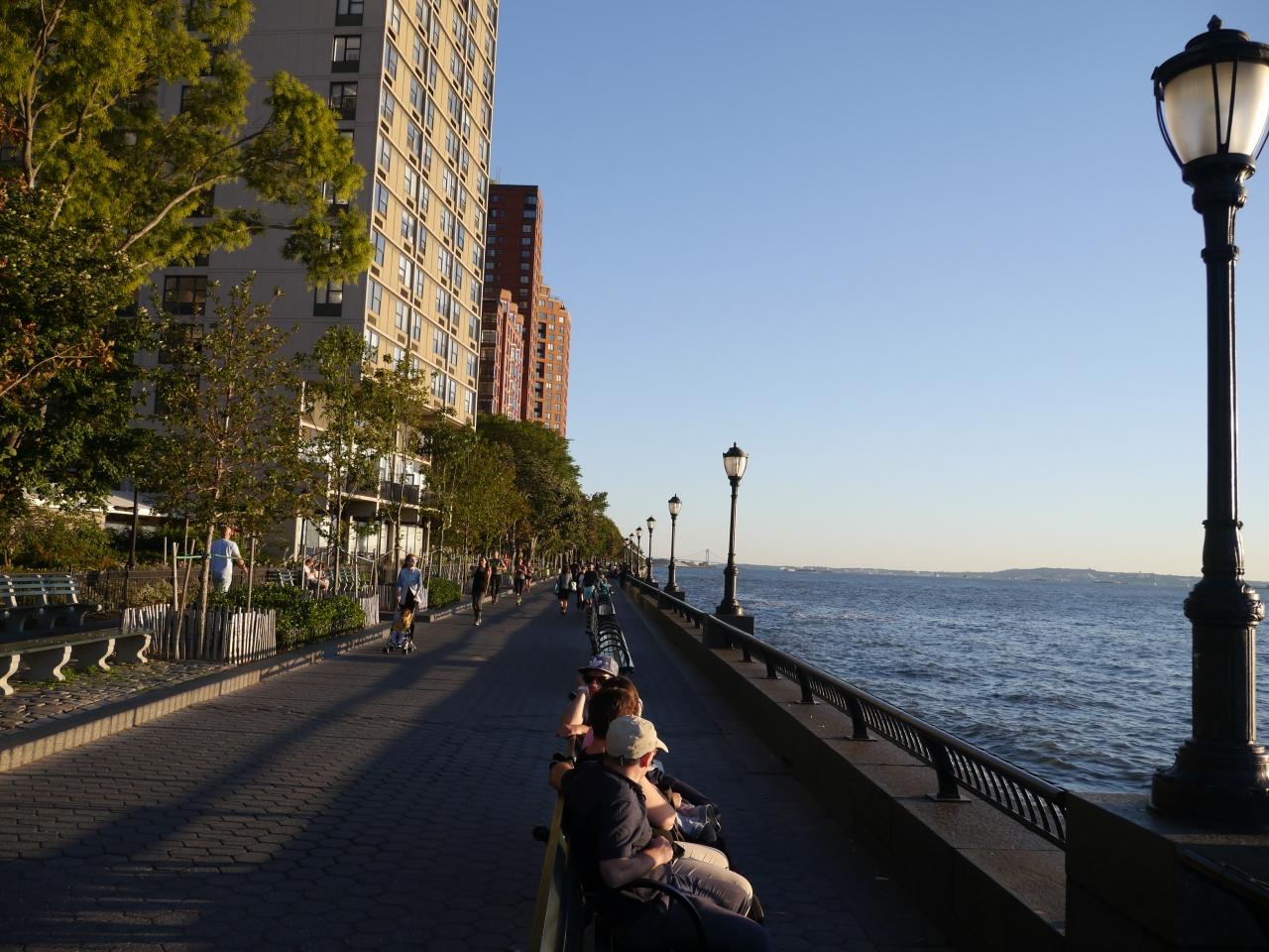 展望台から眺めた景色の余韻に浸りながら、ビルの前の道路を渡って、ハドソン川の河口に出てみます。