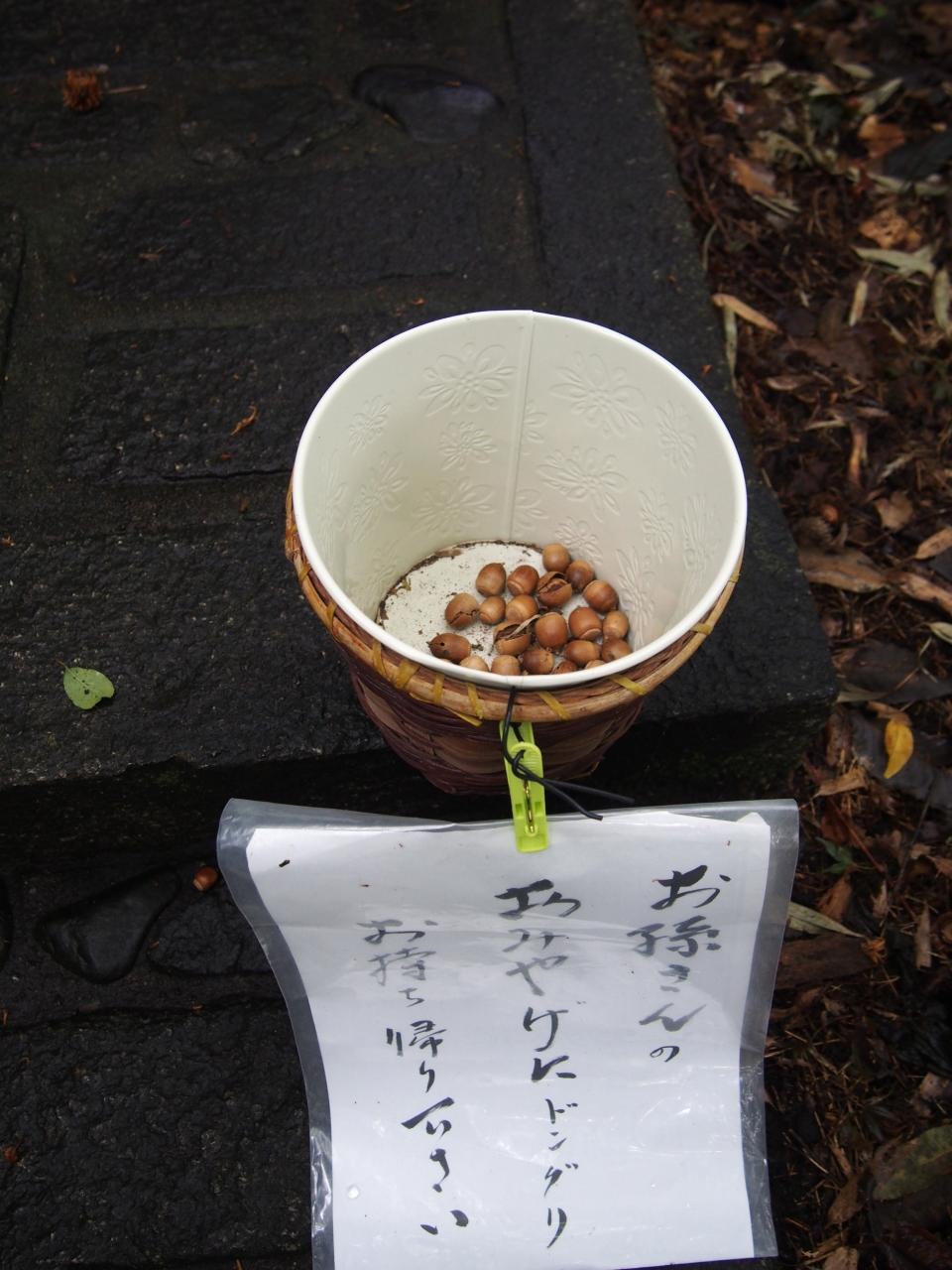『お孫さんのおみやげにドングリお持ち帰り下さい』と書いてあります。