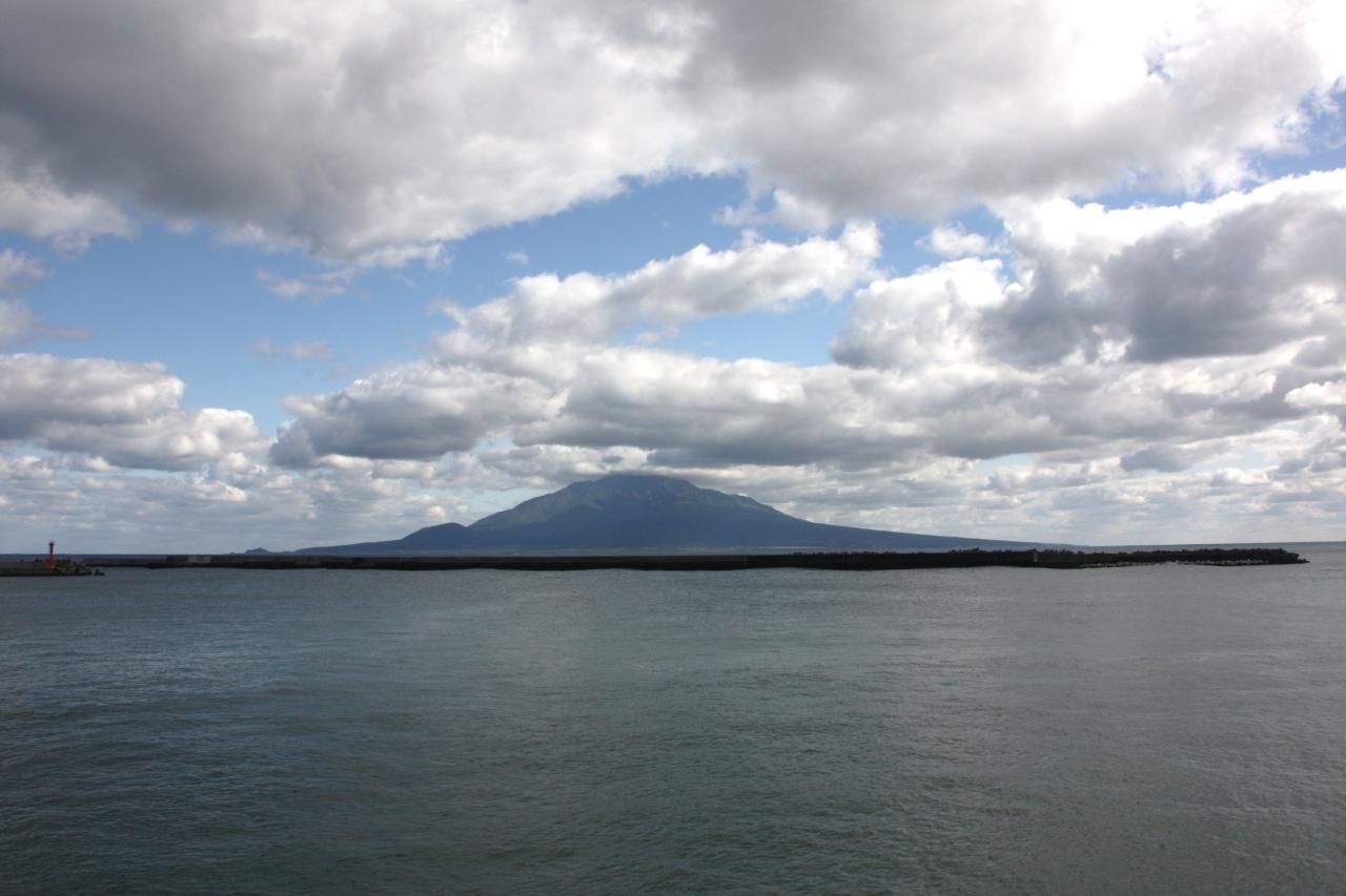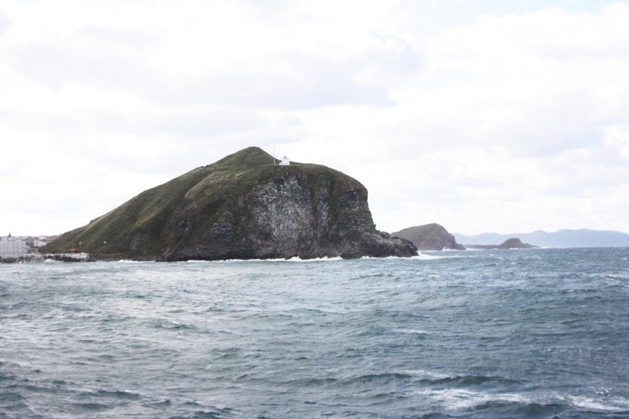 フェリーターミナルから突き出た鯨のようにそびえる”ペシ岬”