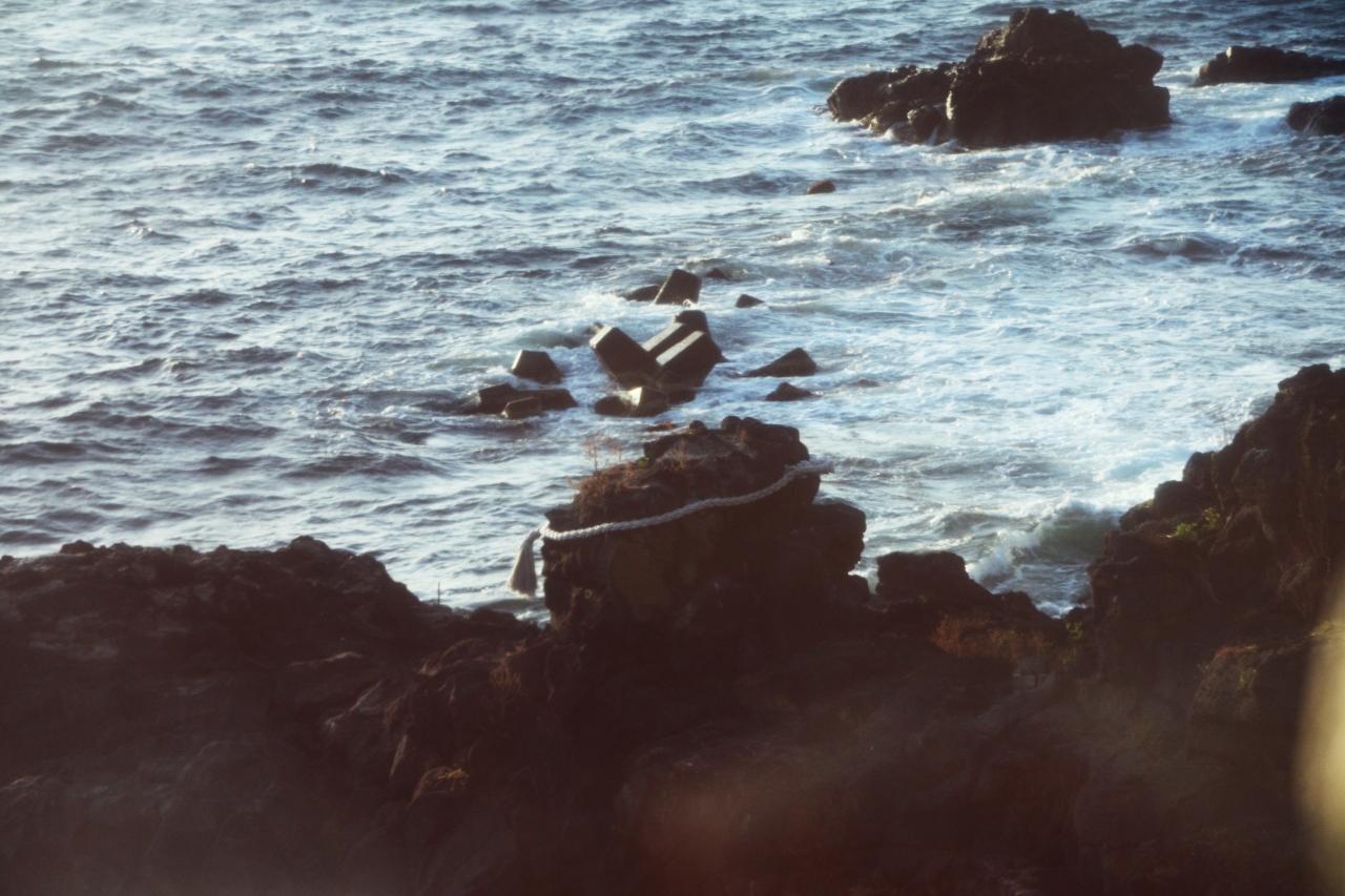 ”人面岩”眼を閉じた男の横顔に見え、海を見守っているような穏やかな表情