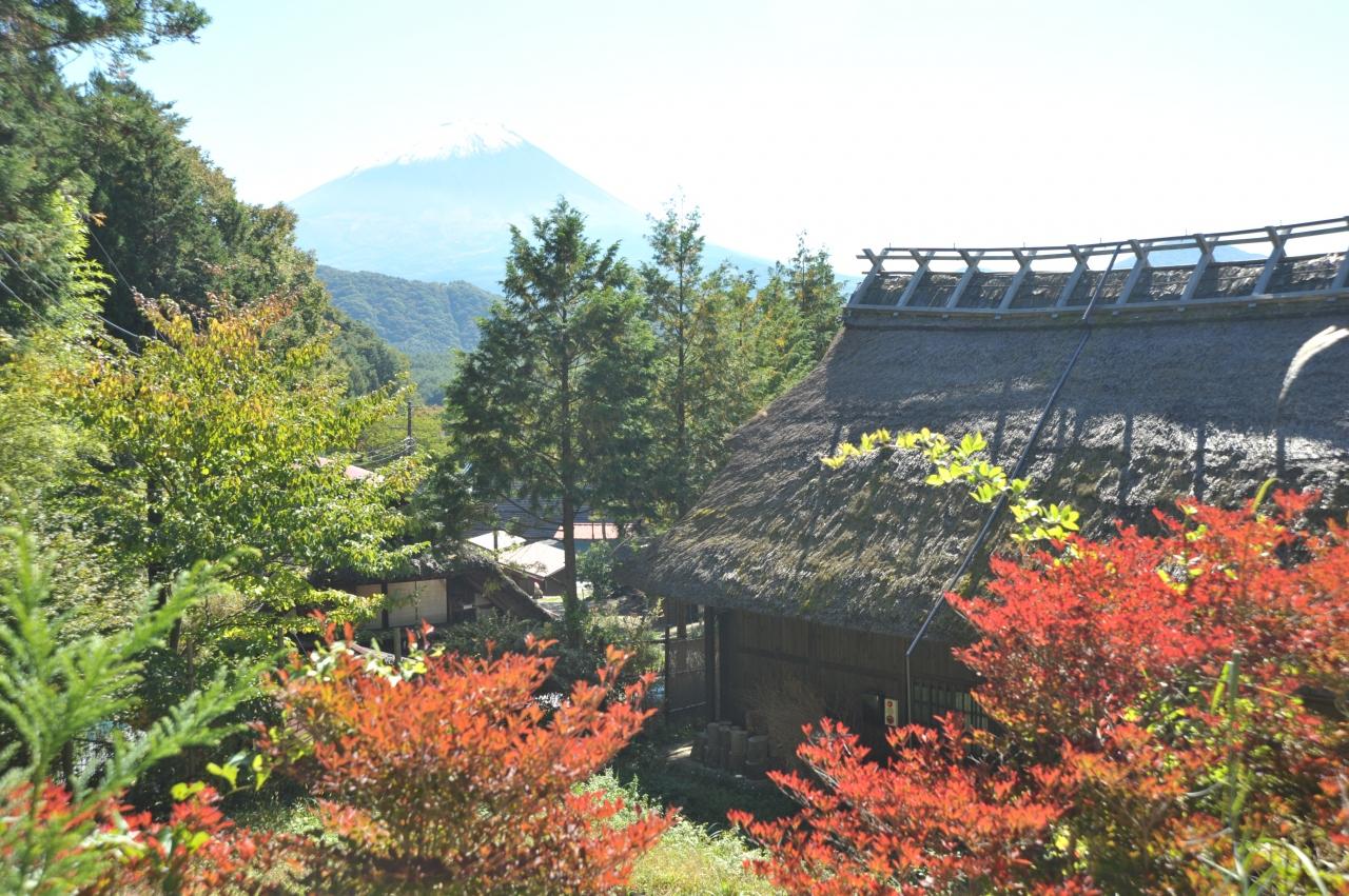 いやしの里は賑わってます。富士山と茅葺き屋根が似合います。外国人も多いです。