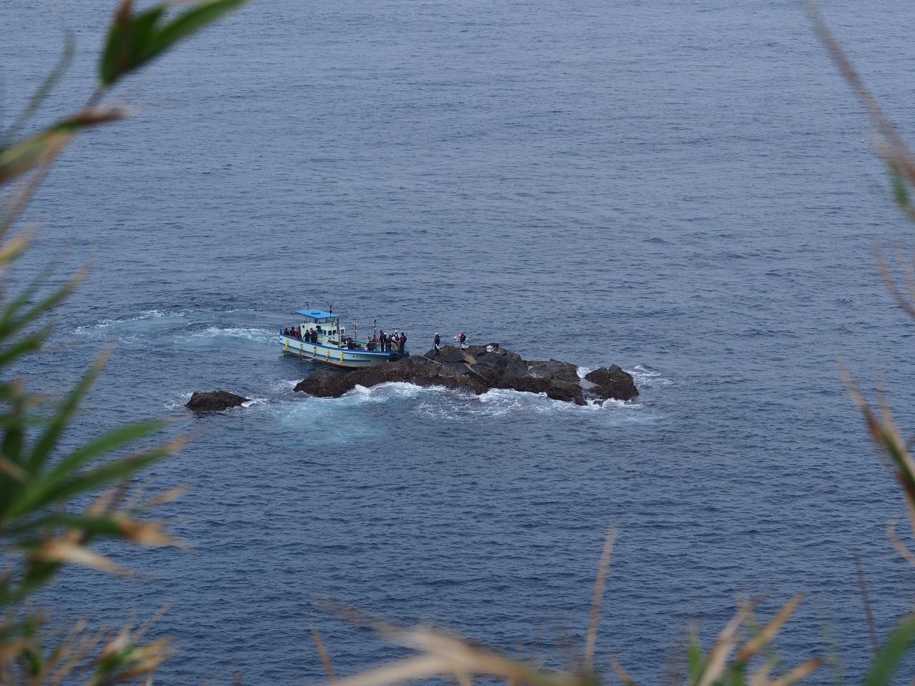 あ、ここから陸つながりになってない岩場んとこで釣りしてる人たちが船で回収されてんのが見えましたっ