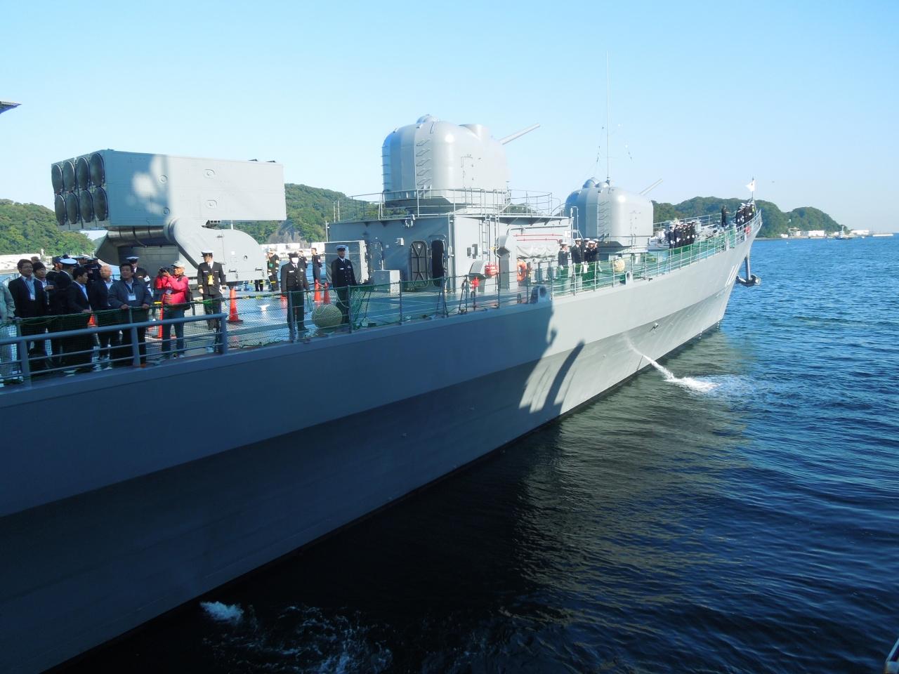 横須賀基地の吉倉桟橋から乗艦するのは受閲部隊の第3番艦、護衛艦「おおなみ」です。