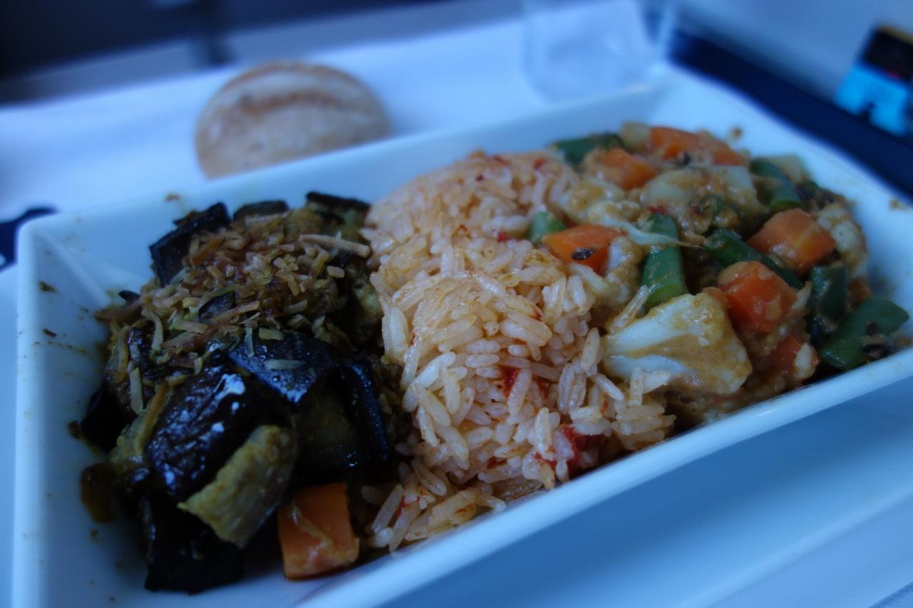 フレンドリーなアテンダントの方の対応はいい感じでしたが、機体は旧く、個人のスペースも狭め。食事のほうも、日系キャリアさんの勝ちかなぁ