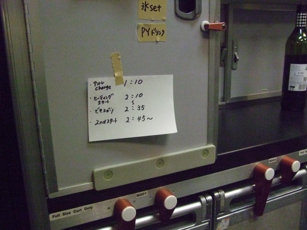 トイレに行く途中、ギャレーにCAさん用のタイムスケジュールが(笑)