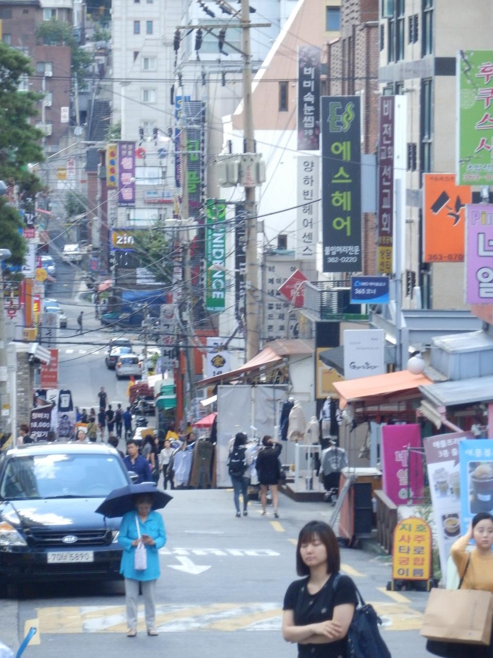 弘大入口(ポンディック)駅に到着 。韓国の芸術関係の街でもあります。